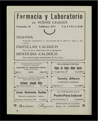 La farmacia Calduch amplia sus instalaciones, se traslada a Castellón y se transforma en un pequeño laboratorio de productos cosméticos y farmacéuticos: los Laboratorios Calduch.